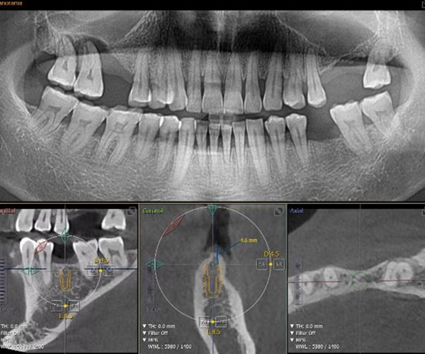 자기뼈가 부족한 경우 진단 및 모의수술 과정에서 확인 후 인공 골이식의 필요성을 설명드립니다.
